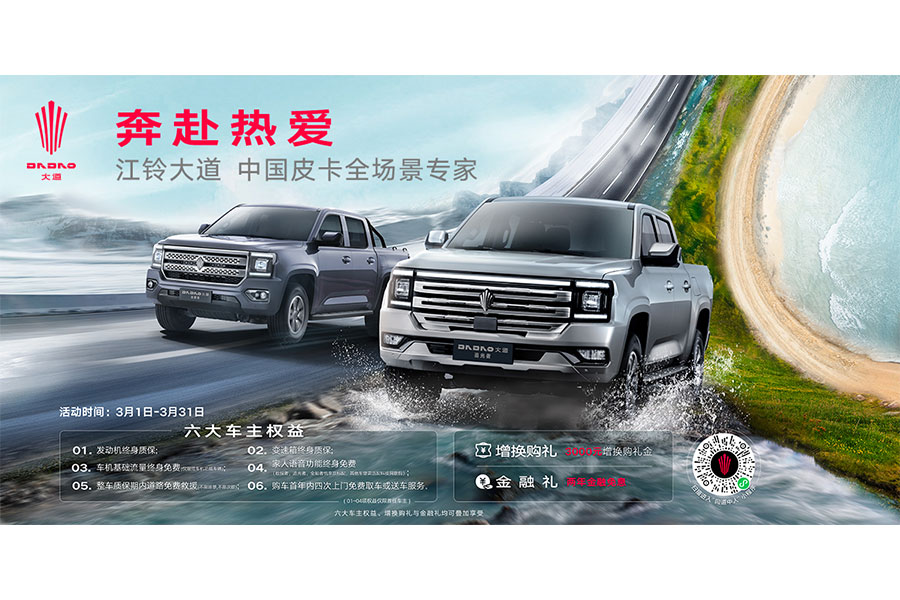 更長的質(zhì)量擔(dān)保:江鈴(商用車)自2018年起零件最高質(zhì)量擔(dān)保期為24個月或20萬公里(乘用車自2018年起執(zhí)行整車不低于36個月或10萬公里的質(zhì)量擔(dān)保期),新車提供首次免費保養(yǎng)服務(wù)。