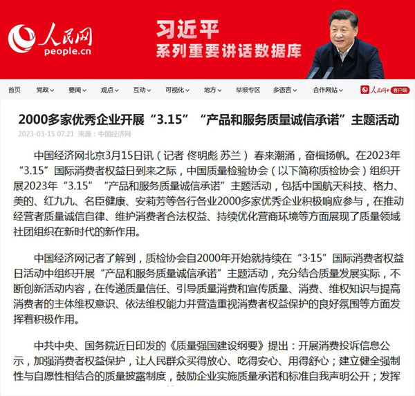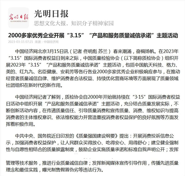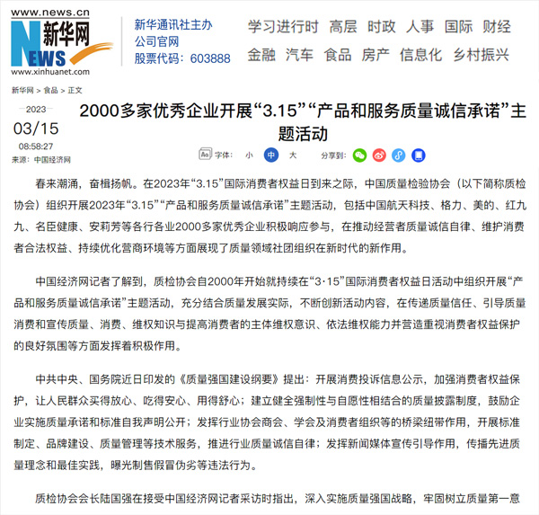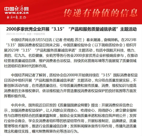 傳遞質(zhì)量信任 提振消費信心 合力推進高質(zhì)量發(fā)展啟新章——中國質(zhì)量檢驗協(xié)會組織2000多家優(yōu)秀典范企業(yè)開展“3.15”產(chǎn)品和服務(wù)質(zhì)量誠信承諾活動