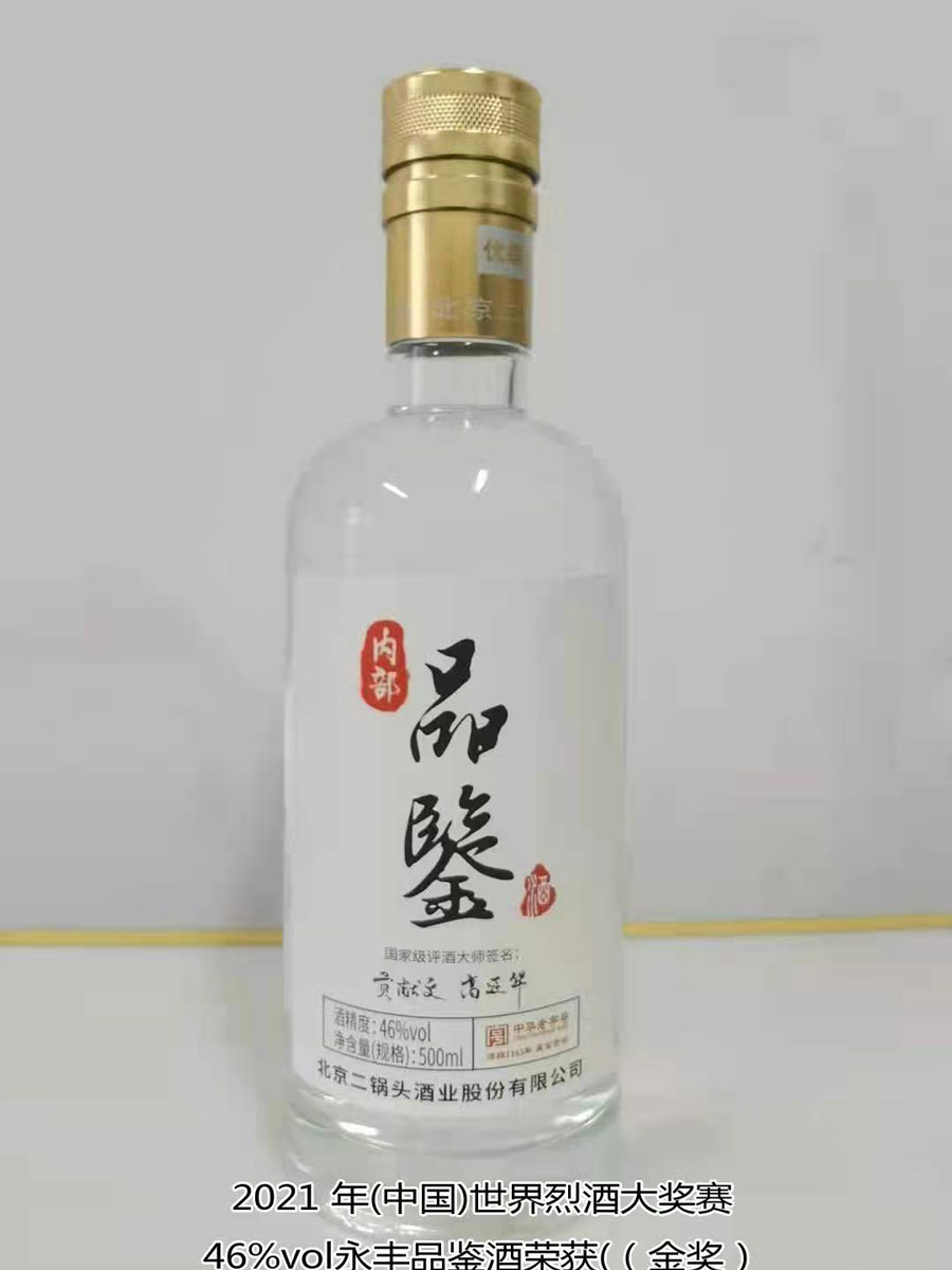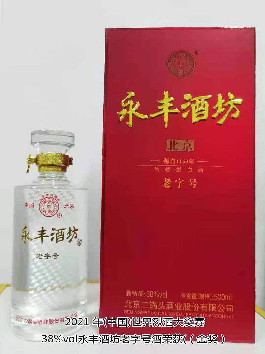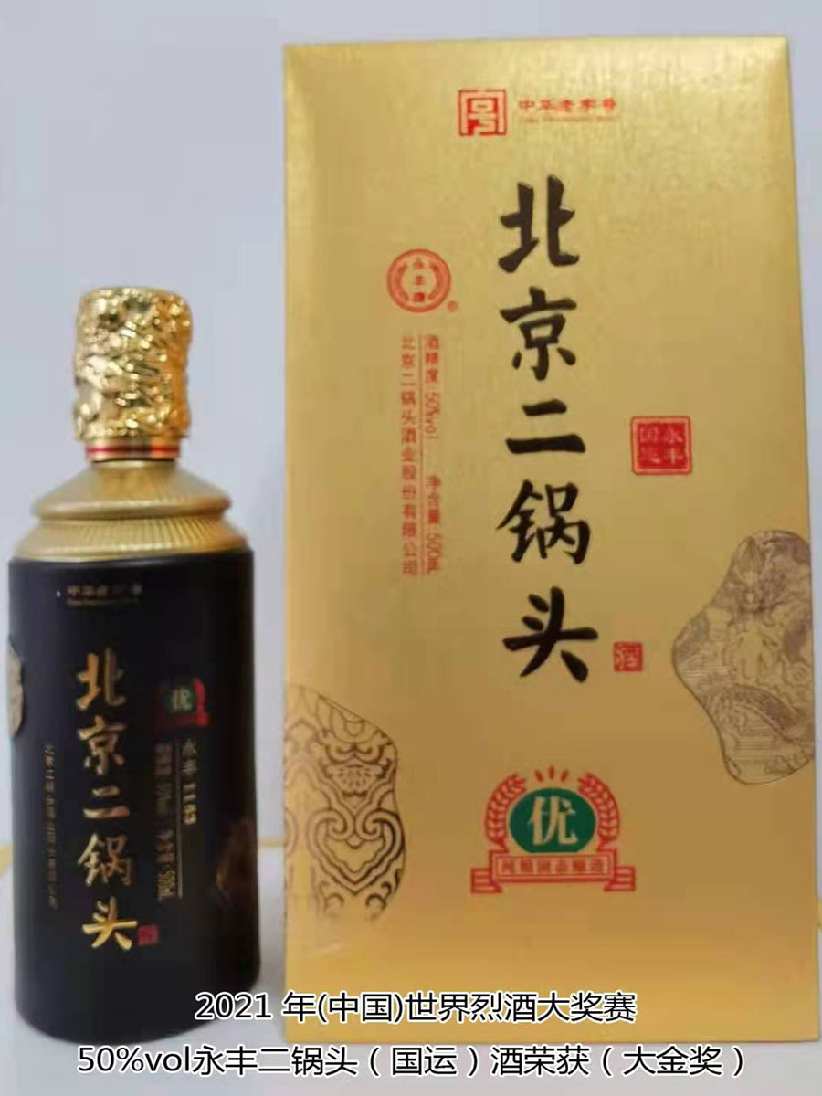 北京二鍋頭酒業(yè)股份有限公司傳承老北京二鍋頭傳統(tǒng)釀造技藝,產(chǎn)品選用優(yōu)質(zhì)高粱為原料,以麩曲為糖化發(fā)酵劑,采用老五甑發(fā)酵法、混蒸混燒、看花接酒、掐頭去尾、長期儲存、精工勾兌而成。產(chǎn)品多次獲得各種優(yōu)質(zhì)產(chǎn)品稱號,“永豐牌”商標(biāo)2000年度、2004年度、2007年度連續(xù)三屆被北京市工商行政管理局認(rèn)定為北京市著名商標(biāo);2003年9月,“永豐”二鍋頭、京王子酒被評為北京市優(yōu)秀新產(chǎn)品獎;2004年,被授予“中國白酒質(zhì)量優(yōu)秀產(chǎn)品”及首都市場“質(zhì)量、信譽、服務(wù)”優(yōu)秀企業(yè)、優(yōu)質(zhì)產(chǎn)品稱號;2006年11月,被評為“中國歷史文化名酒”;2007年12月,被評為“AAA”級信用企業(yè),同年榮獲“中國質(zhì)量過硬知名品牌”;2011年5月,“永豐”牌被中華人民共和國商務(wù)部評為“中華老字號”;2021年10月,在2021國際酒類(中國)大獎賽中,北京二鍋頭酒業(yè)股份有限公司共獲得五枚金牌,其中38%vol永豐酒坊老字號酒、46%vol永豐品鑒酒、52%vol醉流霞瓷瓶酒、50%vol永豐粱大俠(典藏)酒四款產(chǎn)品榮獲“金獎”,50%vol永豐二鍋頭(國運)酒榮獲“大金獎”。此次大獎賽北京二鍋頭酒業(yè)股份有限公司榮登“金獎”之首,得到了國際酒類(中國)大獎賽組委會及全國頂級評酒大師、酒業(yè)泰斗專家們的一致好評,肯定了北京二鍋頭酒業(yè)股份有限公司專業(yè)技術(shù)人員高超的技藝和敬業(yè)的工匠精神。