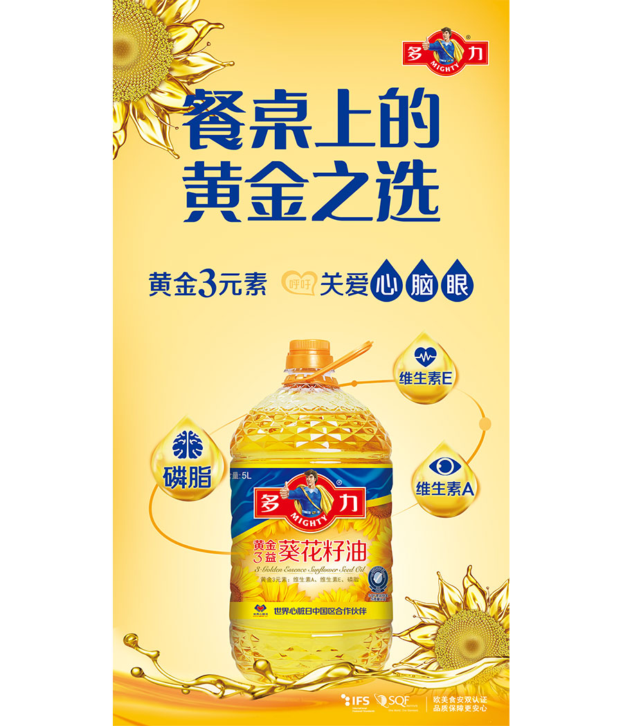 佳格集團(tuán)以健康營養(yǎng)的“多力”葵花籽油為起點(diǎn)切入食用油市場,深耕市場20年后,佳格已擁有現(xiàn)代化的研發(fā)中心、支持全國的內(nèi)蒙、太倉及廈門三大生產(chǎn)基地,以及遍布各地的業(yè)務(wù)網(wǎng)點(diǎn)。截至目前,“多力”食用油系列涵蓋葵花籽油、菜籽油、壓榨玉米油等多款產(chǎn)品,以其獨(dú)有的7重精煉技術(shù)、享譽(yù)國際的品質(zhì)標(biāo)準(zhǔn)以及倡導(dǎo)國人健康的品牌理念,深得廣大消費(fèi)者信賴并成為中國食用油市場領(lǐng)導(dǎo)品牌。