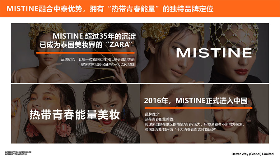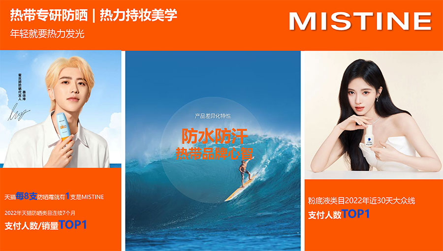 主要產(chǎn)品:MISTINE蜜絲婷防曬,底妝、護(hù)膚、彩妝
