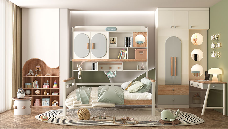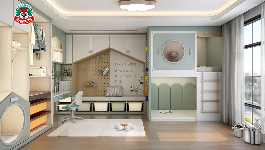 松堡王國圍繞孩子成長居家生活四大基礎(chǔ)功能:學(xué)習(xí)區(qū)、收納區(qū)、娛樂區(qū)、睡眠區(qū),深度交合孩子成長方式,以美學(xué)設(shè)計、親子陪伴、趣味模塊為新空間設(shè)計概念,正向引導(dǎo)孩子建立良好生活習(xí)慣,形成成長生活秩序感,用愛為孩子打造有趣的成長空間。