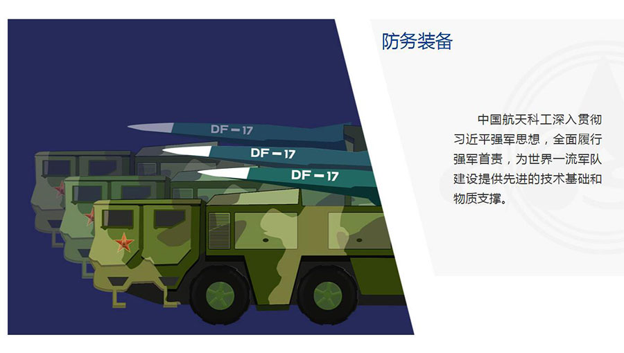 中國航天科工積極適應世界軍事發(fā)展趨勢和我軍軍事斗爭準備急需,深入貫徹習近平強軍思想,貫徹新時代軍事戰(zhàn)略方針,聚焦如期實現建軍一百年奮斗目標,著眼復雜戰(zhàn)場環(huán)境下的作戰(zhàn)需求,加速戰(zhàn)略性、前沿性、顛覆性技術創(chuàng)新,加速武器裝備升級換代和智能化武器裝備發(fā)展,推動科研生產能力不斷增強、新型導彈武器不斷涌現、裝備科研生產體系更加完整,為人民軍隊捍衛(wèi)國家主權、安全、發(fā)展利益提供先進的技術基礎、物質保障和強有力的導彈武器裝備戰(zhàn)略支撐。