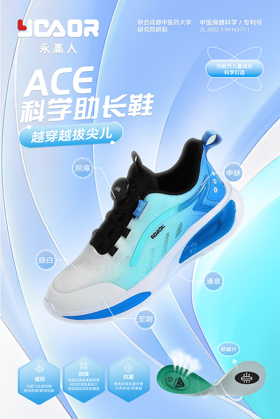 2021年,永高人順應國內消費升級,與國際超級IP海綿寶寶跨界合作,繼續(xù)引領兒童鞋服時尚前沿趨勢。此外,還攜手成都中醫(yī)藥大學專家團隊聯(lián)合研制“永高人科技助長保健鞋”系列產(chǎn)品,通過“磁刺激”對足部穴位按摩,聯(lián)絡身體經(jīng)脈,從而調節(jié)臟腑器官的機能活動,助力兒童身高成長發(fā)育。