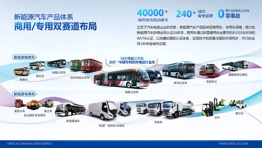 以完善的研發(fā)體系,格力鈦加快技術創(chuàng)新與產業(yè)升級的步伐。格力鈦研發(fā)的格力鈦電池安全性長期領跑行業(yè),憑借具有高安全、大倍率、快充放、耐寬溫、長壽命等特性,被選為“國家制造業(yè)單項冠軍產品”,廣泛應用于新能源汽車以及工商業(yè)園區(qū)、通訊基站、電網調頻、軌道交通、風光消納、船舶岸電、家庭住宅、軍事科研等儲能領域,具有廣闊的市場前景和應用價值。目前,格力鈦儲能產品已在丹麥、瑞士、芬蘭等全球30多個國家和地區(qū)使用,新能源汽車產品在北京、杭州、武漢、成都、青島、哈爾濱、包頭、??诘热?40多座城市運營,12年全球零電池事故安全運行。