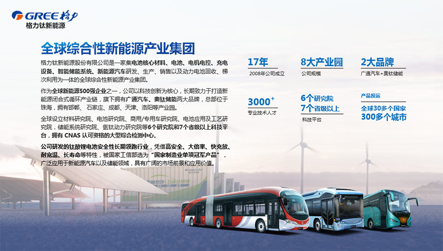 格力鈦新能源股份有限公司是一家集電池核心材料、電池、電機電控、充電設備、智能儲能系統(tǒng)、新能源汽車研發(fā)、生產、銷售以及動力電池回收、梯次利用為一體的全球綜合性新能源產業(yè)集團。