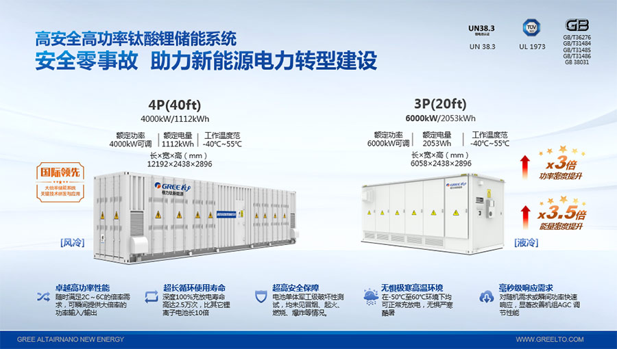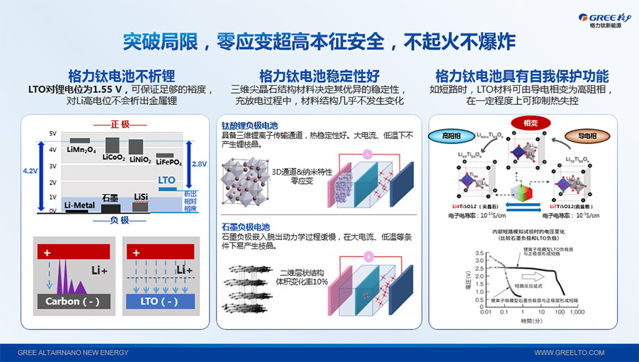鈦酸鋰電池技術是新能源行業(yè)唯一獲得中國專利獎金獎的鋰電池產品技術,其應用于儲能電池和動力電池具有超高安全性,在快充放、耐寬溫、長壽命等方面同樣具有卓越的性能。格力鈦電池系列產品具有不起火不爆炸高安全、6分鐘快充放、-50℃至60℃耐寬溫特性,循環(huán)充放電次數高達30000多次,使用壽命長達30年。格力鈦電池經利鋸切割、尖針穿刺、強力擠壓、電鉆沖孔、短路充放電、高溫加熱、槍擊等極限條件測試,均未發(fā)生冒煙、起火、燃燒、爆炸等現象。