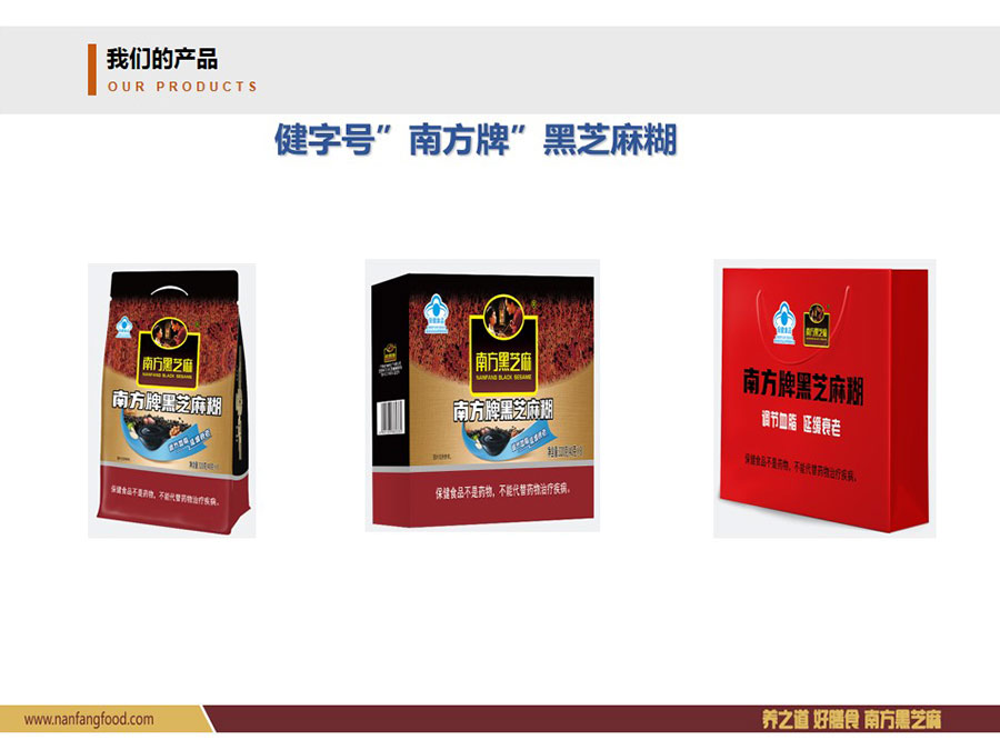 主要產(chǎn)品:黑芝麻糊、即食谷物餐粉、黑芝麻丸等產(chǎn)品
