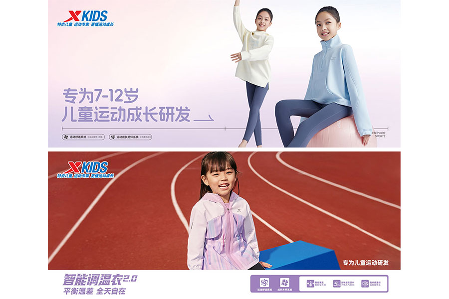 主要產(chǎn)品:特步兒童童鞋、童裝、兒童配件