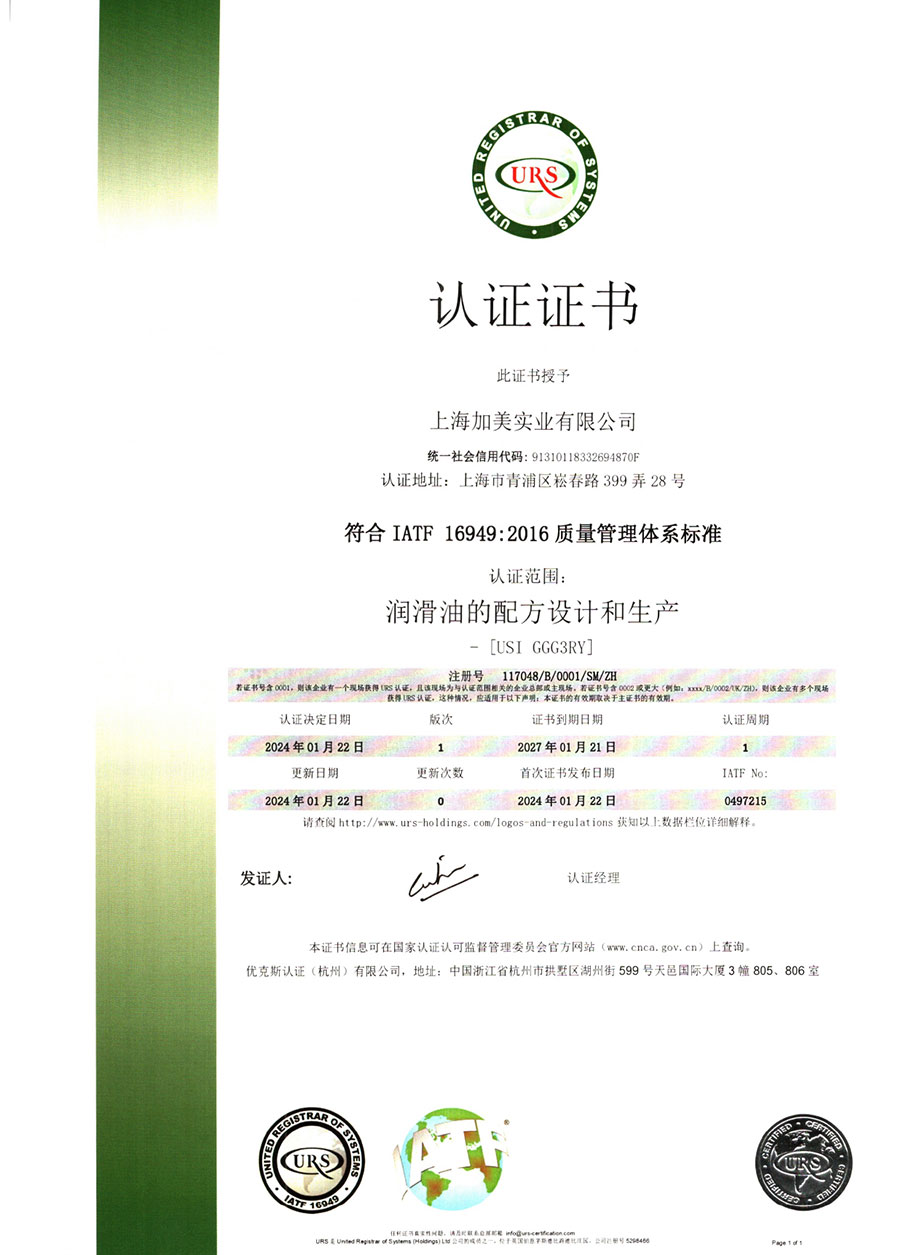 柯賽德斯集團(tuán)公司統(tǒng)一遵循嚴(yán)格的質(zhì)量保證體系,先后通過了武器裝備質(zhì)量管理體系認(rèn)證GJB9001C-2017、ISO/TS16949、IS09001質(zhì)量體系認(rèn)證、1S014001環(huán)境體系認(rèn)證及ISO45001:2018職業(yè)健康安全管理體系認(rèn)證。隨著業(yè)務(wù)領(lǐng)域的不斷擴(kuò)展,目前柯賽德斯集團(tuán)公司先后與多家世界能源、化工方面的巨頭建立了產(chǎn)品服務(wù)、供應(yīng)保障、技術(shù)合作、技術(shù)特別支持單位等方面的戰(zhàn)略合作關(guān)系。今天,柯賽德斯集團(tuán)公司旗下管理著三大潤(rùn)滑油品牌,實(shí)現(xiàn)了經(jīng)營(yíng)上的多元化戰(zhàn)略格局。