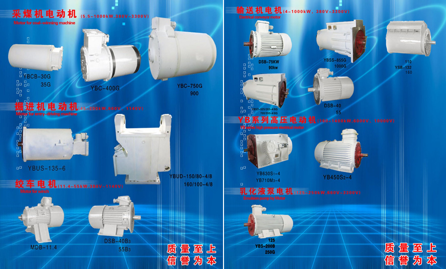 目前公司可生產(chǎn)4~1800KW,電壓等級380V、660V、1140V、3300V、6000V、10000V的礦用采煤機、運輸機、掘進(jìn)機、乳化液泵、絞車、風(fēng)機、YB電機等七大系列500多個品種,通過技術(shù)開發(fā),新研制了YBBP變頻一體機等高技術(shù)產(chǎn)品。