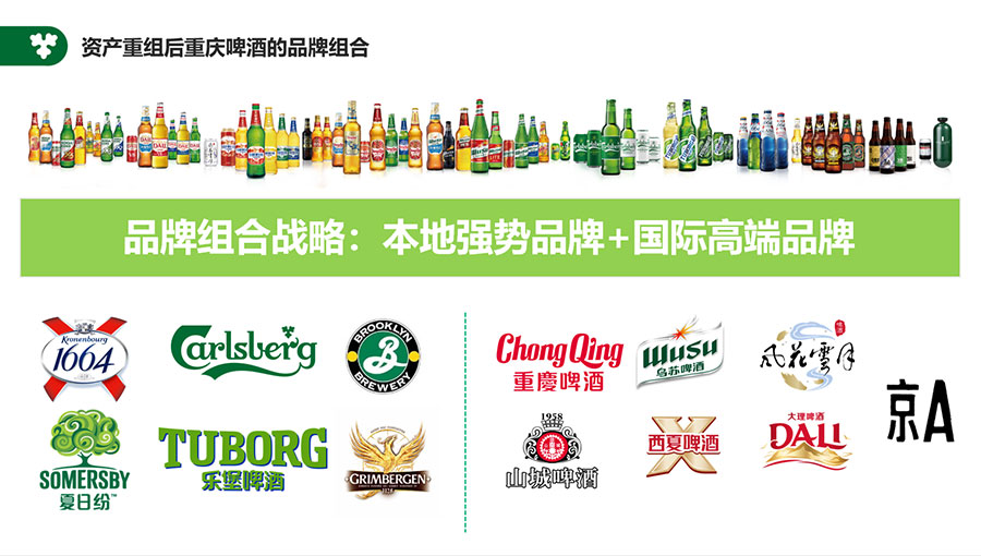 同時,重啤股份也擁有了更為強(qiáng)大的“本地強(qiáng)勢品牌+國際高端品牌”的品牌組合。國際高端品牌方面有嘉士伯、樂堡、凱旋1664、格林堡、布魯克林等,本地強(qiáng)勢品牌方面有重慶、山城、烏蘇、西夏、大理、風(fēng)花雪月、天目湖等,滿足消費(fèi)者在不同場景的消費(fèi)需求,成為重啤股份的核心競爭力之一。