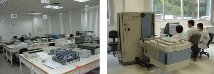 在產(chǎn)品檢測方面經(jīng)過近半個(gè)世紀(jì)的積累和發(fā)展,檢測中心已經(jīng)成為擁有專業(yè)試驗(yàn)場地2000多平方米,各類先進(jìn)儀器設(shè)備700多臺(tái)/套,專業(yè)技術(shù)人員60多人的專業(yè)檢測試驗(yàn)室。具有滿足國際最高標(biāo)準(zhǔn)的恒溫恒濕間300平方米、標(biāo)準(zhǔn)測試間600多平方米、標(biāo)準(zhǔn)試驗(yàn)大廳1000多平方米、集成電路萬級凈化測試間250平方米。試驗(yàn)室內(nèi)有保證試驗(yàn)正常進(jìn)行的能源、光、電和通風(fēng),并有專門設(shè)施監(jiān)控環(huán)境條件。測量間內(nèi)的環(huán)境溫度長期控制在23±2℃,相對濕度為50±5%RH。各類試驗(yàn)間均能滿足溫度15~35℃,相對濕度45~75%RH這一條件。