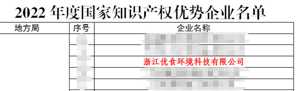 優(yōu)食科技榮獲“2022年度國家知識產(chǎn)權優(yōu)勢企業(yè)”稱號