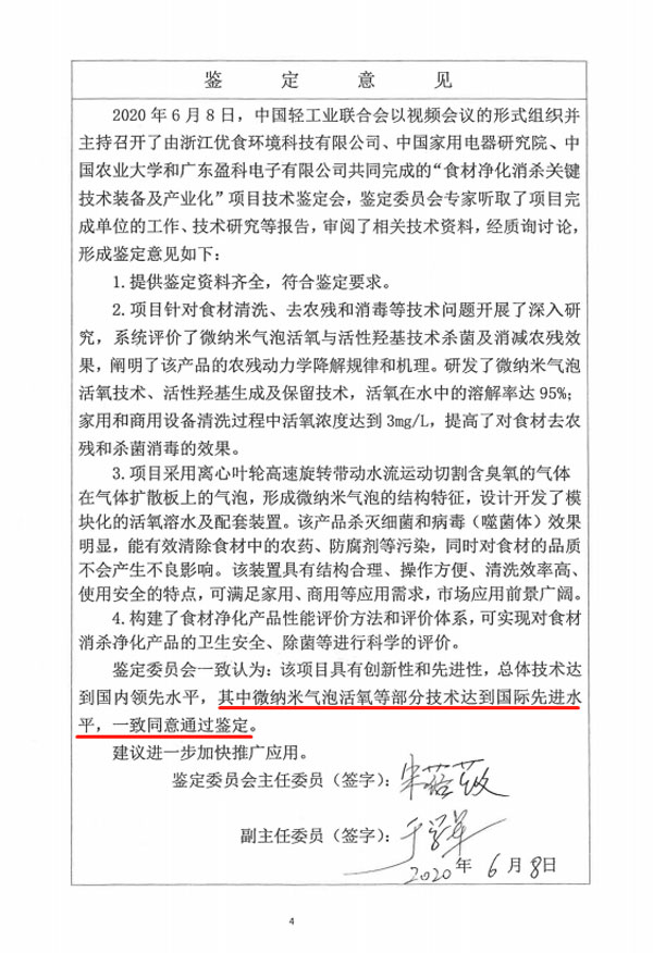 具有自主知識產(chǎn)權的“微納米氣泡活氧羥基”(UISH MOH+ ?)技術被中國輕工業(yè)聯(lián)合會鑒定為國際先進。