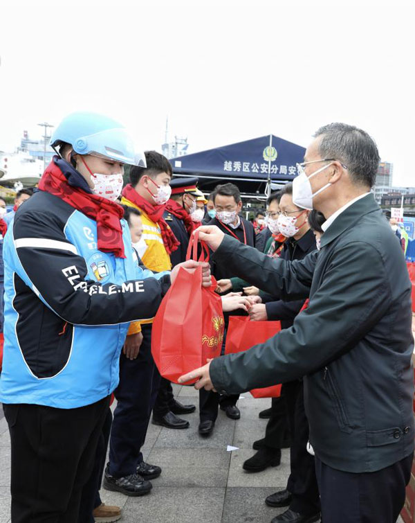 省人大常委會(huì)黨組成員、省總工會(huì)主席呂業(yè)升出席慰問(wèn)活動(dòng)并向廣大勞動(dòng)者致以親切問(wèn)候和新春祝福。省總工會(huì)黨組書記、常務(wù)副主席陳偉東,省總工會(huì)黨組成員、副主席杜玲,省總工會(huì)副主席(兼職)、廣州市人大常委會(huì)副主任、市總工會(huì)黨組書記、主席唐航浩等代表廣東工會(huì)向慰問(wèn)現(xiàn)場(chǎng)的網(wǎng)約配送員、環(huán)衛(wèi)工人、建筑工人以及保障春運(yùn)的保安員、醫(yī)務(wù)人員、公安干警、鐵路客運(yùn)服務(wù)人員等職工代表送上新春慰問(wèn)大禮包。廣州市總工會(huì)及越秀區(qū)總工會(huì)相關(guān)領(lǐng)導(dǎo)參加了慰問(wèn)活動(dòng)。