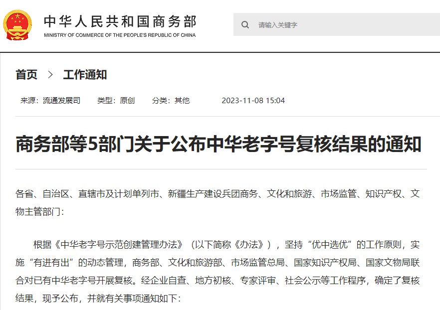 關(guān)于公布中華老字號復核結(jié)果的通知