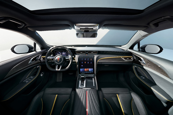 在內(nèi)飾設(shè)計方面,紅旗H6以“環(huán)懸科技”概念,采用流動輕盈的整體架構(gòu),為駕乘者帶來尊貴體驗。超大中控豎屏、“金盞黃+黑色”內(nèi)飾、“真皮+碳纖維”方向盤、運動座椅、全液晶儀表盤、精致簡潔的門板和飾條設(shè)計,在傳承家族“中軸式布局”的基礎(chǔ)上,呈現(xiàn)出兼具豪華尊享、智慧科技、激情動感的風尚氣息。