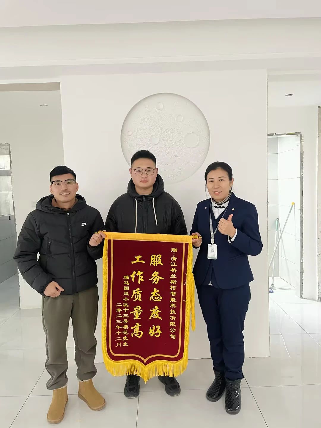 2023年12月,堅朗格蘭斯柯新風事業(yè)部又增添了一面錦旗--“服務態(tài)度好,工作質量高”,錦旗由瑞馬國風小區(qū)物業(yè)、十三號樓業(yè)主范先生共同贈送,表達對格蘭斯柯新風專業(yè)、貼心服務的感謝和認可。