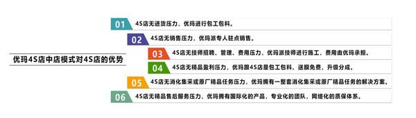 針對汽車主機廠和4S店渠道,優(yōu)瑪進行了服務(wù)創(chuàng)新升級,從傳統(tǒng)的售后服務(wù)升級成包括優(yōu)質(zhì)產(chǎn)品推薦、差異化的產(chǎn)品及技術(shù)培訓(xùn)、整車加精品一體式的項目運營指導(dǎo)、階段性店面活動營銷策劃、售后優(yōu)先賠付、增值服務(wù)營銷等等全方位的咨詢式服務(wù)營銷模式。30多家4S店集團和車廠超2000家4S店的優(yōu)質(zhì)服務(wù)經(jīng)驗,奠定了優(yōu)瑪品牌已成為中國4S渠道最專業(yè)的太陽膜項目整體運營服務(wù)解決方案提供商之一的行業(yè)領(lǐng)航者地位。