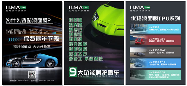 2020年,優(yōu)瑪品牌推出第二代漆面保護膜,包括UMA333、UMA555、UMA666、UMA888ACS、UMA999TOP、UMA999MAX、UMA999PRO系列,進一步滿足了客戶以及消費者對于汽車漆面保護的各類需求,同時也鞏固了優(yōu)瑪漆面保護膜在中國市場的領(lǐng)導(dǎo)地位。同時,優(yōu)瑪品牌發(fā)布全新優(yōu)瑪汽車漆面膜品牌logo形象,進一步優(yōu)化了品牌形象策略。