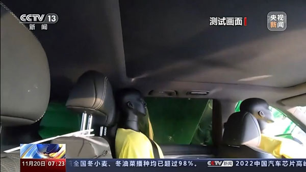 全新第二代GS8在27噸重載貨車側(cè)壓下車身結(jié)構(gòu)保持完好