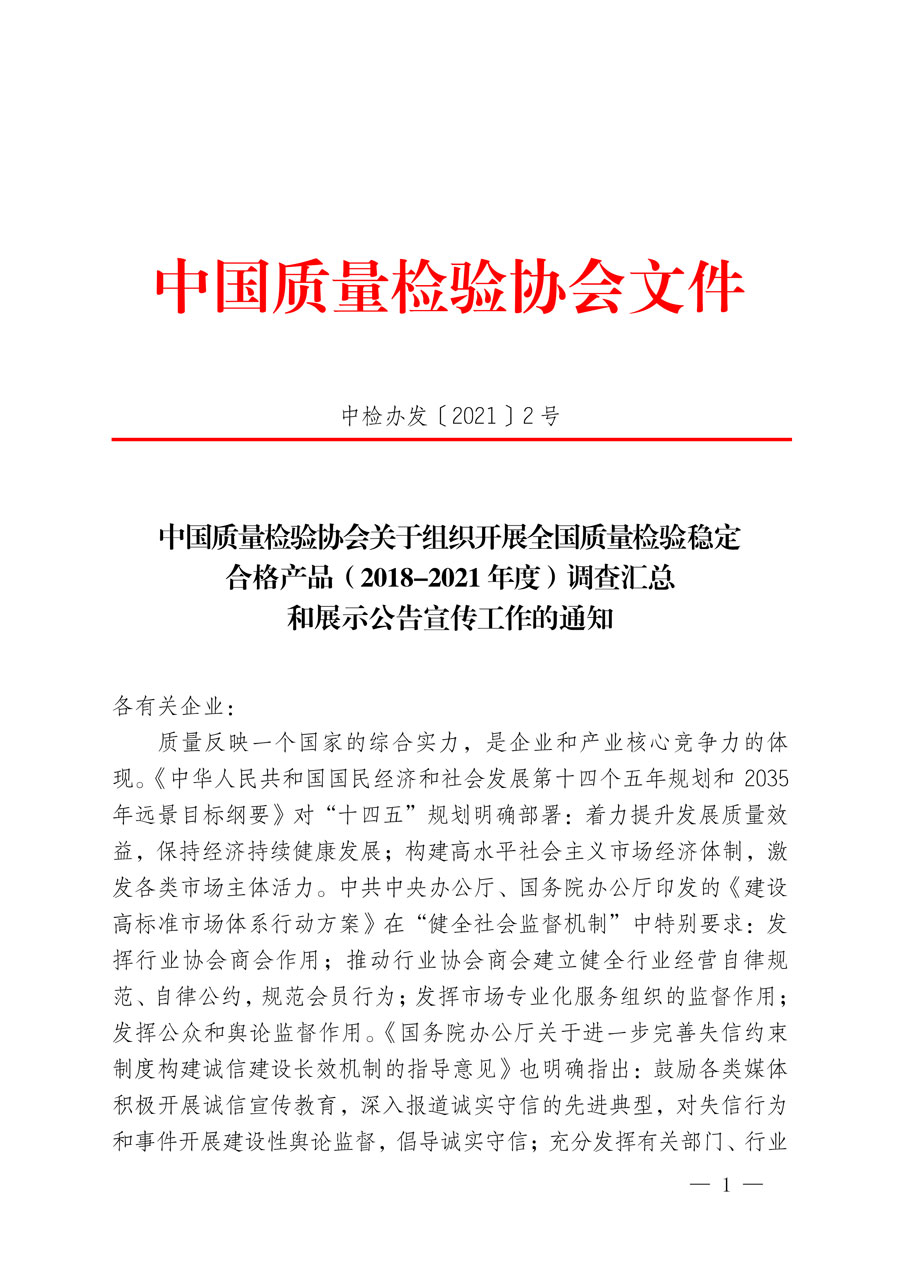 中國(guó)質(zhì)量檢驗(yàn)協(xié)會(huì)關(guān)于組織開展全國(guó)質(zhì)量檢驗(yàn)穩(wěn)定