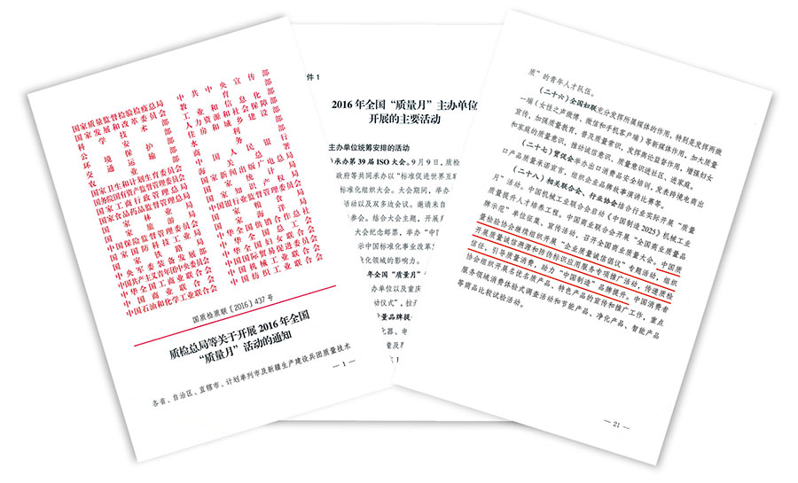 2018年8月,市場監(jiān)管總局、中央宣傳部、發(fā)展改革委、工業(yè)和信息化部、公安部、生態(tài)環(huán)境部、住房和城鄉(xiāng)建設(shè)部、交通運(yùn)輸部、商務(wù)部、文化和旅游部、衛(wèi)生健康委、國資委、海關(guān)總署、廣電總局、銀保監(jiān)會(huì)、全國總工會(huì)、團(tuán)中央等2018年全國“質(zhì)量月”活動(dòng)主辦單位聯(lián)合印發(fā)《市場監(jiān)管總局等關(guān)于開展2018年全國“質(zhì)量月”活動(dòng)的通知》(國市監(jiān)質(zhì)〔2018〕131號(hào)),并在《2018年全國“質(zhì)量月”主辦單位開展的主要活動(dòng)》中明確部署中國質(zhì)量檢驗(yàn)協(xié)會(huì):組織開展“企業(yè)質(zhì)量誠信倡議”專題活動(dòng),開展質(zhì)量誠信溯源和防偽標(biāo)識(shí)應(yīng)用服務(wù)專項(xiàng)推廣活動(dòng)。