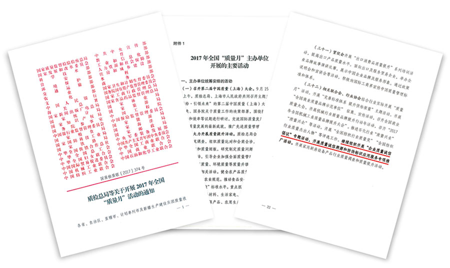 2017年9月12日,《中共中央 國務(wù)院關(guān)于開展質(zhì)量提升行動(dòng)的指導(dǎo)意見》全文發(fā)布。這是黨中央、國務(wù)院首次出臺(tái)的質(zhì)量工作綱領(lǐng)性文件,在我國質(zhì)量發(fā)展進(jìn)程中具有里程碑意義,必將對(duì)我國質(zhì)量發(fā)展產(chǎn)生深遠(yuǎn)影響。